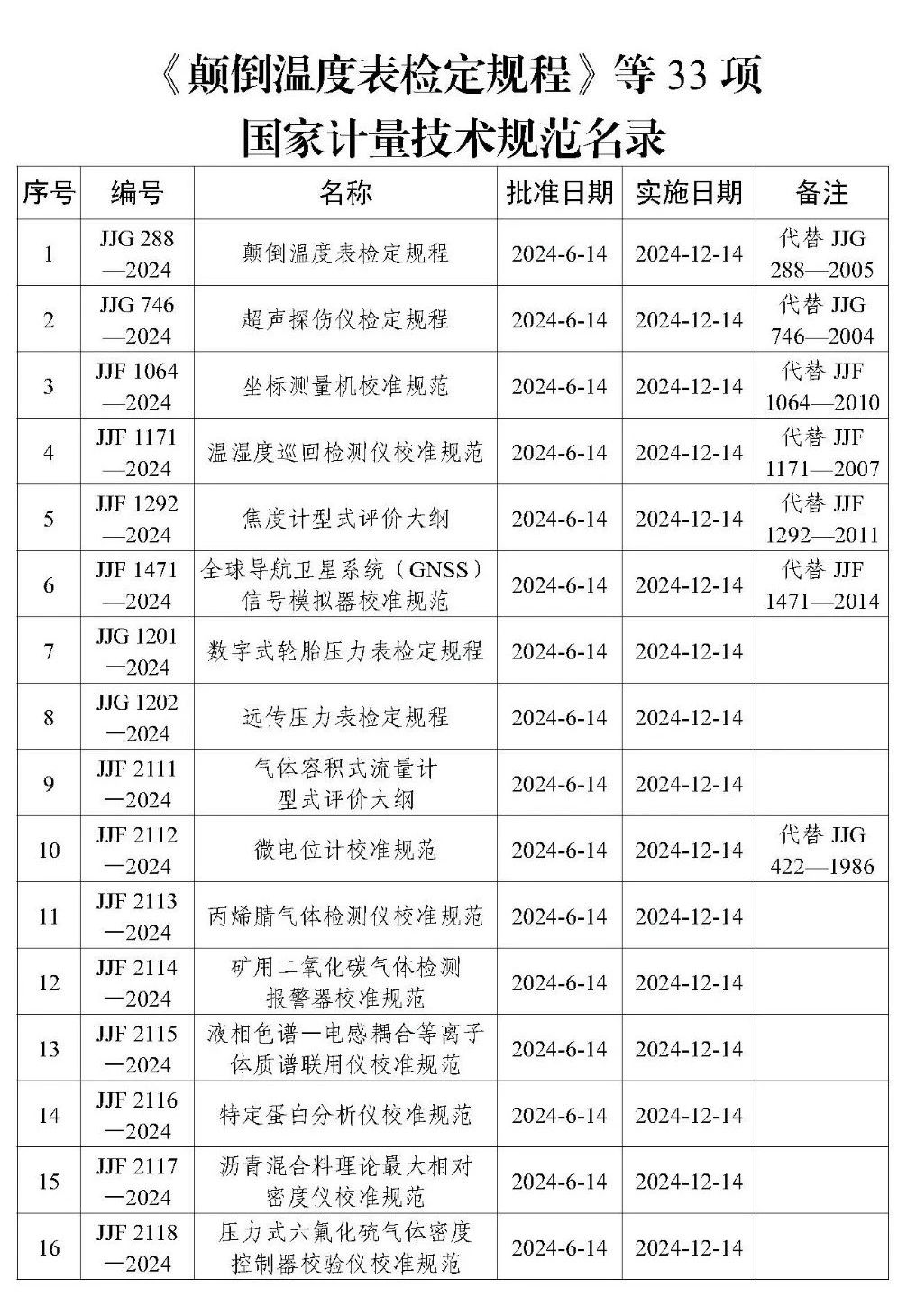 市場(chǎng)監(jiān)管總局關(guān)于發(fā)布《顛倒溫度表檢定規(guī)程》等33項(xiàng)國(guó)家計(jì)量技術(shù)規(guī)范的公告 根據(jù)《中華人民共和國(guó)計(jì)量法》有關(guān)規(guī)定,批準(zhǔn)《顛倒溫度表檢定規(guī)程》等33項(xiàng)國(guó)家計(jì)量技術(shù)規(guī)范發(fā)布