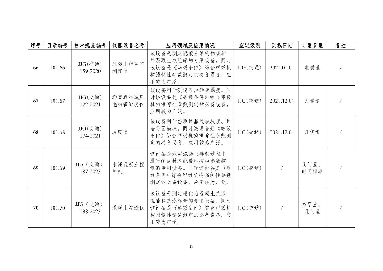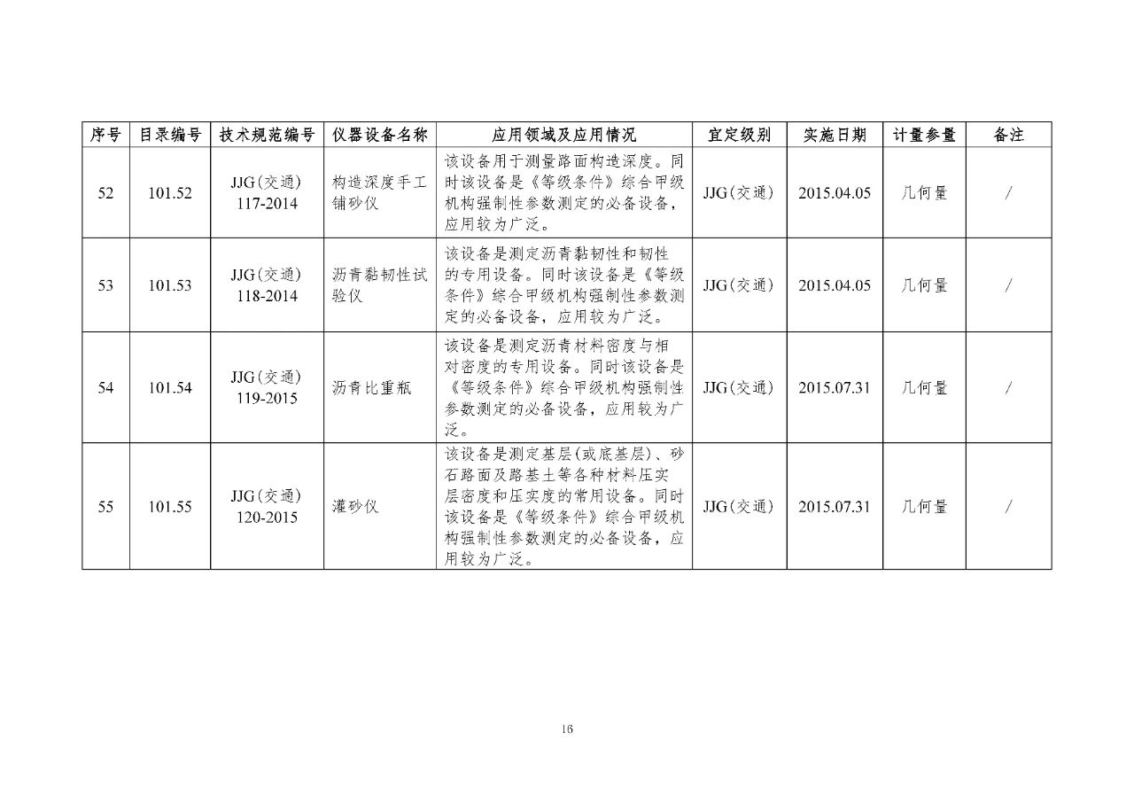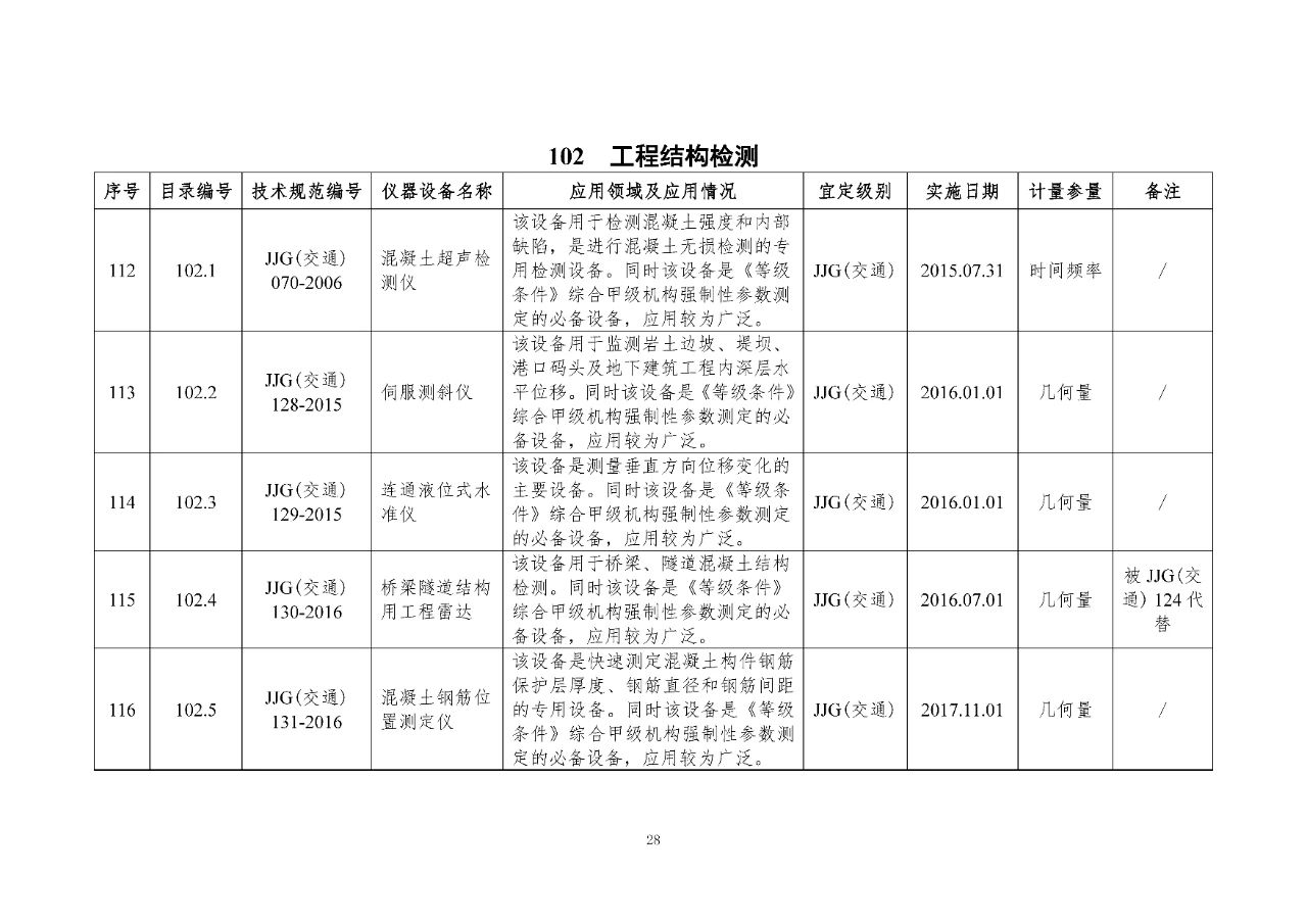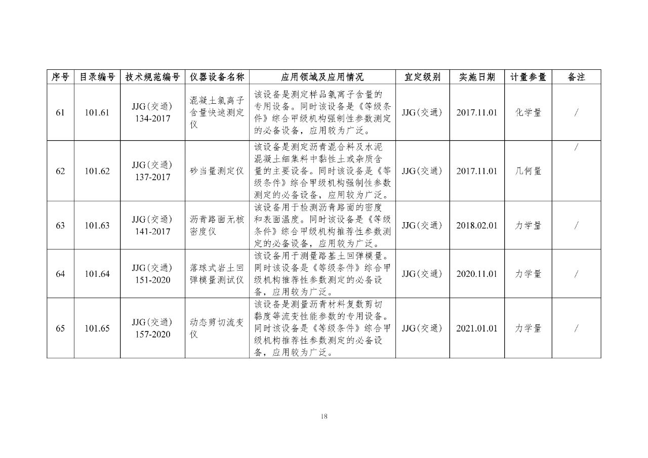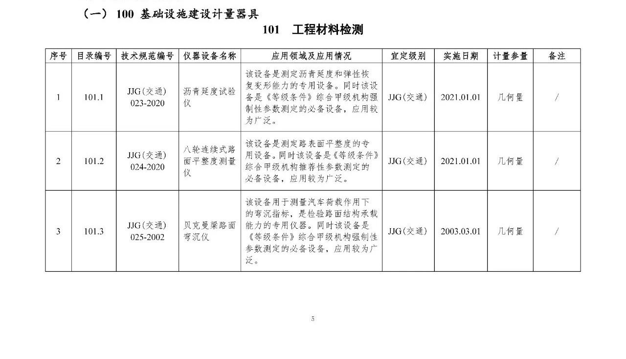 100 基礎(chǔ)設(shè)施建設(shè)計(jì)量器具是公路基礎(chǔ)設(shè)施建設(shè)質(zhì)量檢測過程中涉及的計(jì)量器具,主要包括《公路水運(yùn)工程質(zhì)量檢測機(jī)構(gòu)資質(zhì)等級(jí)條件》(以下簡稱《等級(jí)條件》)工程材料檢測、工程結(jié)構(gòu)檢測領(lǐng)域使用的計(jì)量器具,以及物探領(lǐng)域使用的計(jì)量器具。