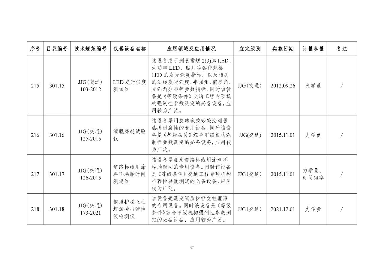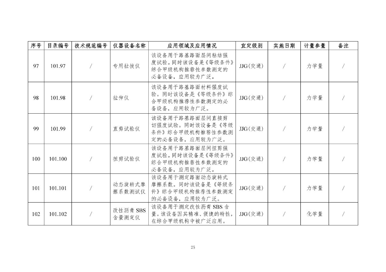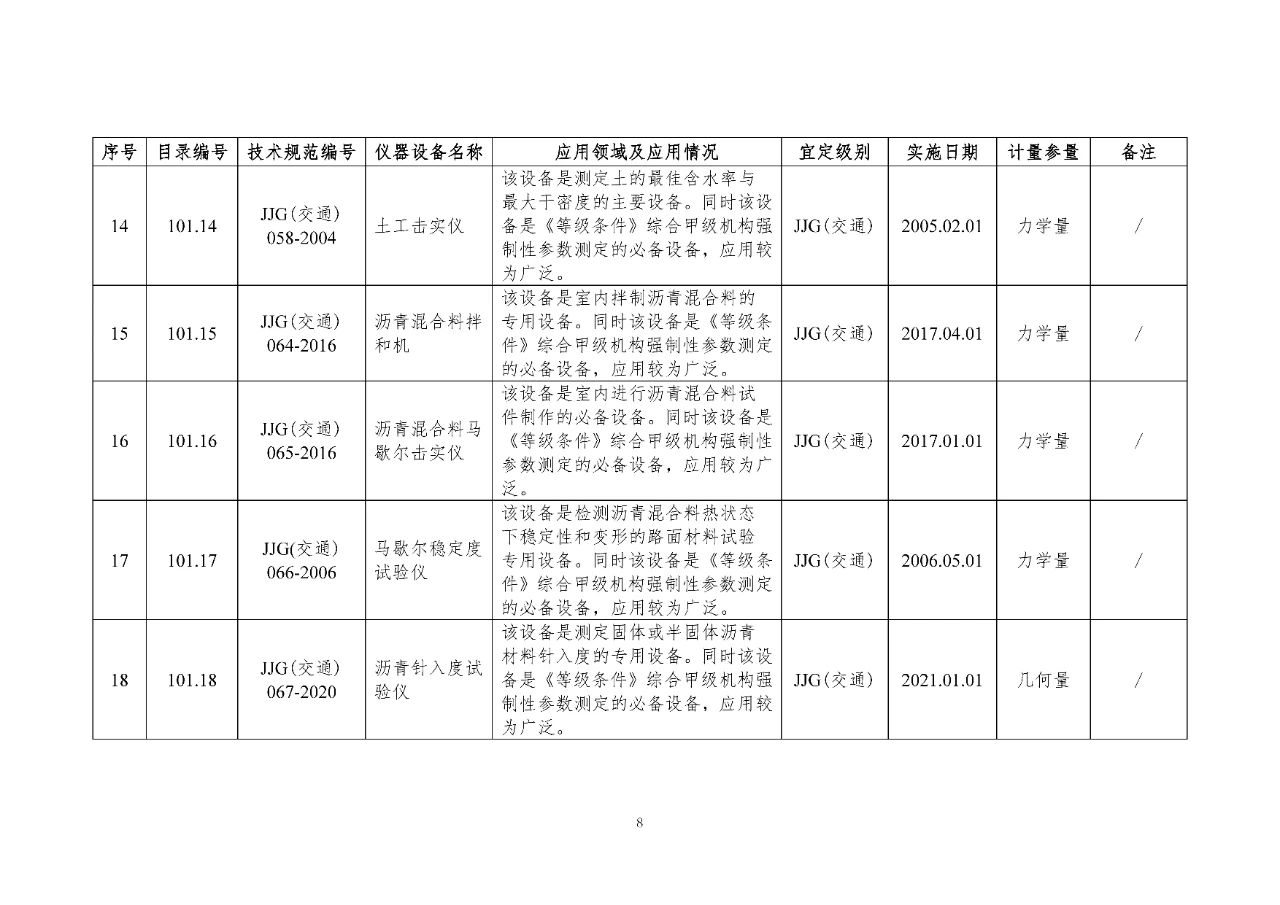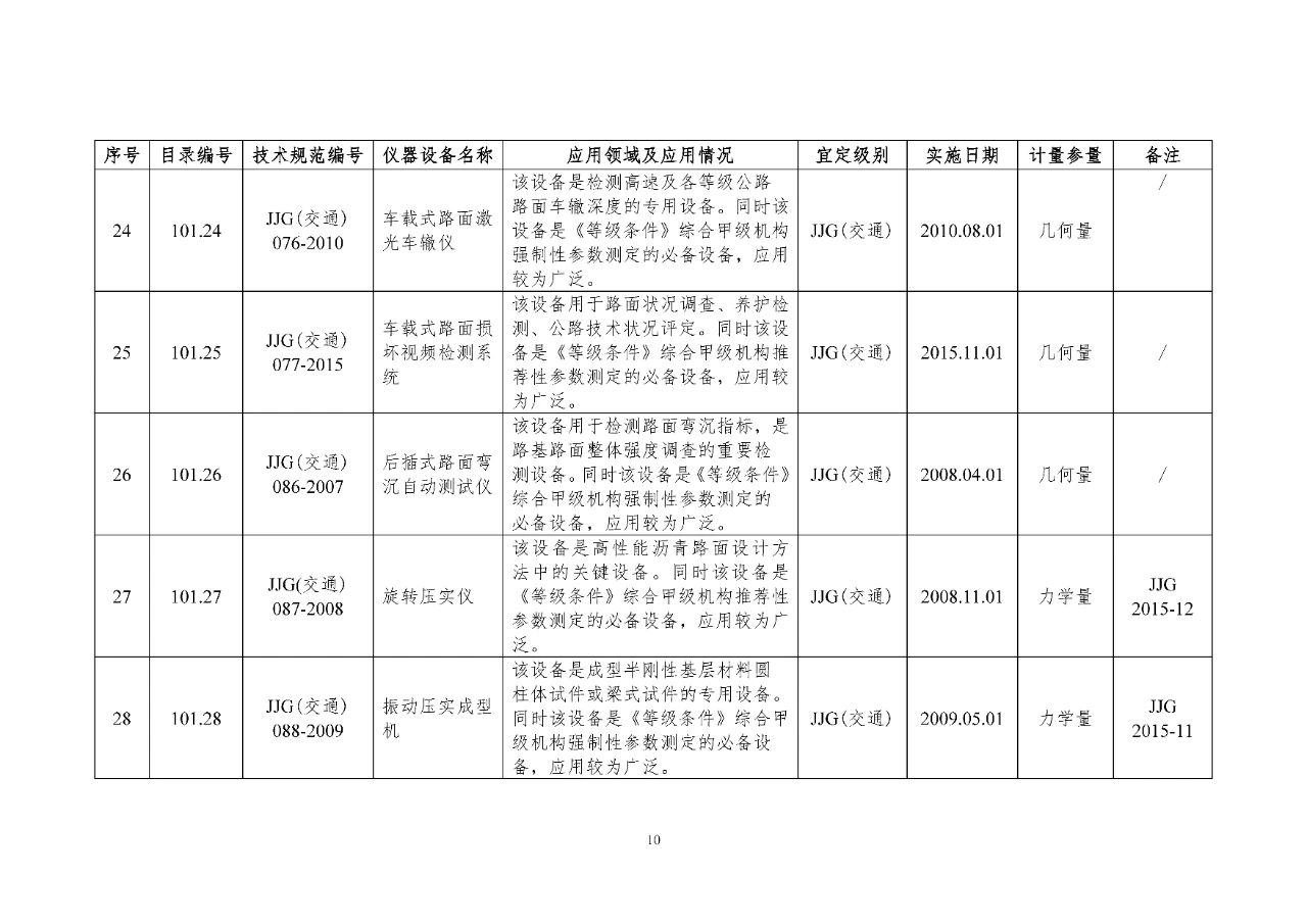 100 基礎(chǔ)設(shè)施建設(shè)計(jì)量器具是公路基礎(chǔ)設(shè)施建設(shè)質(zhì)量檢測過程中涉及的計(jì)量器具,主要包括《公路水運(yùn)工程質(zhì)量檢測機(jī)構(gòu)資質(zhì)等級(jí)條件》(以下簡稱《等級(jí)條件》)工程材料檢測、工程結(jié)構(gòu)檢測領(lǐng)域使用的計(jì)量器具,以及物探領(lǐng)域使用的計(jì)量器具。
