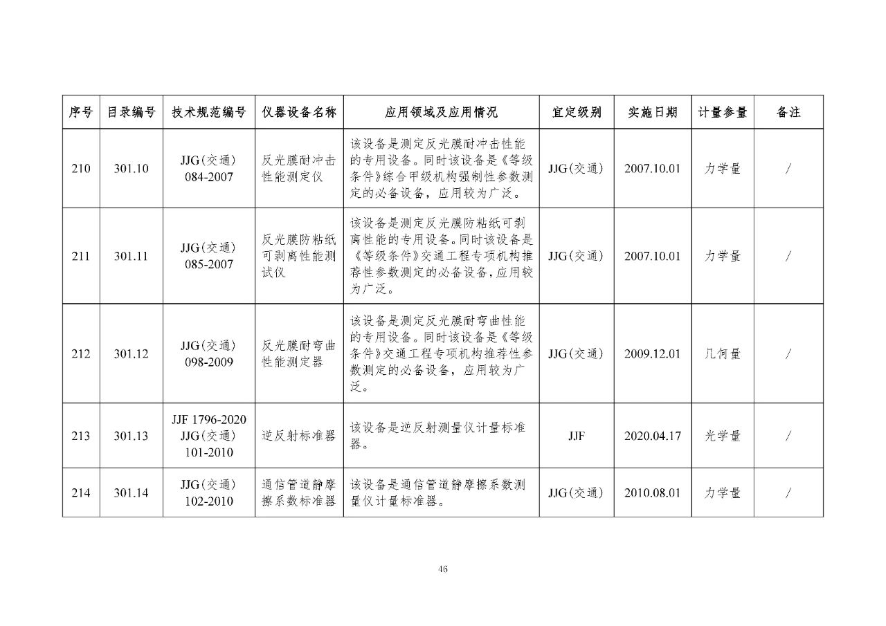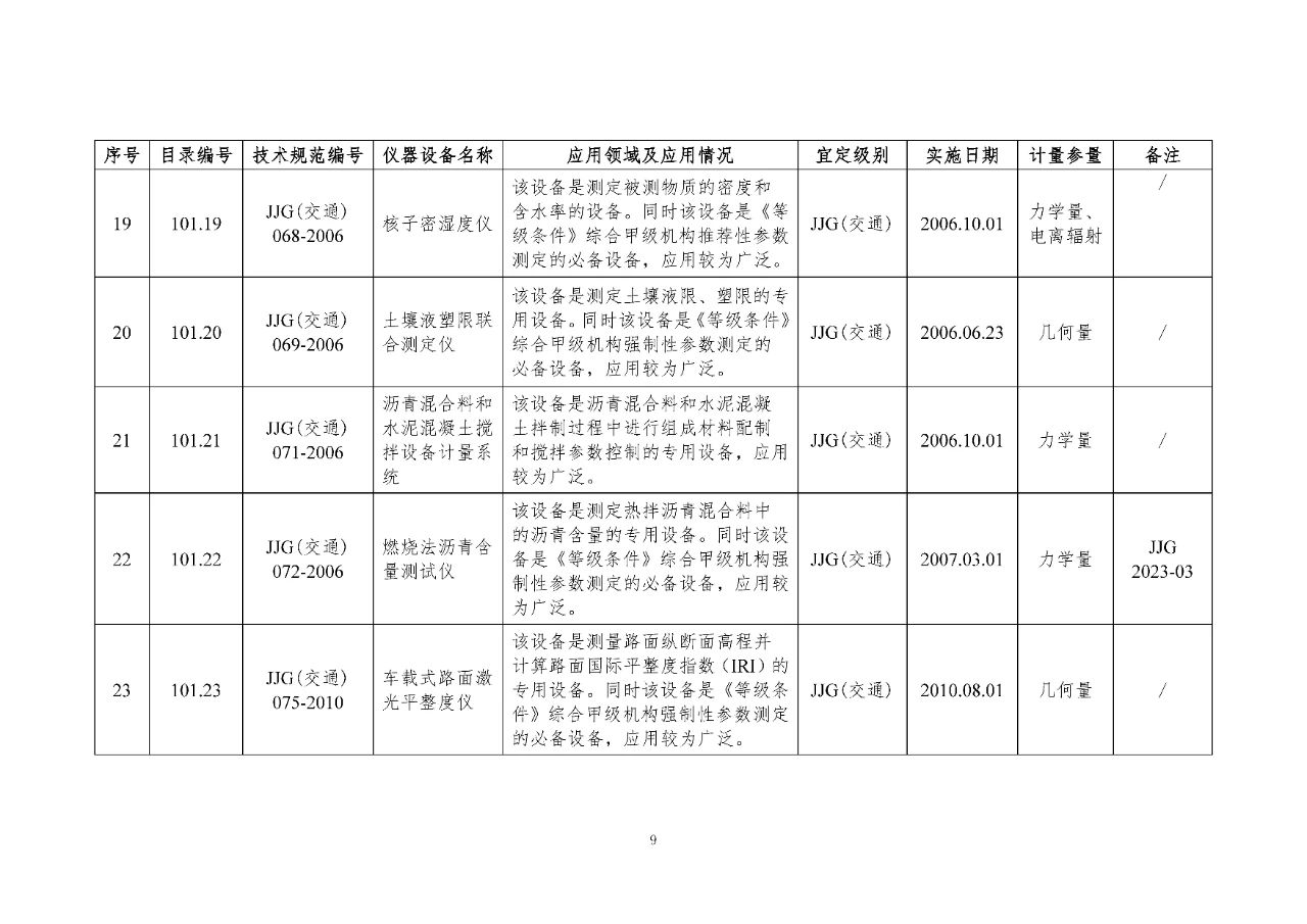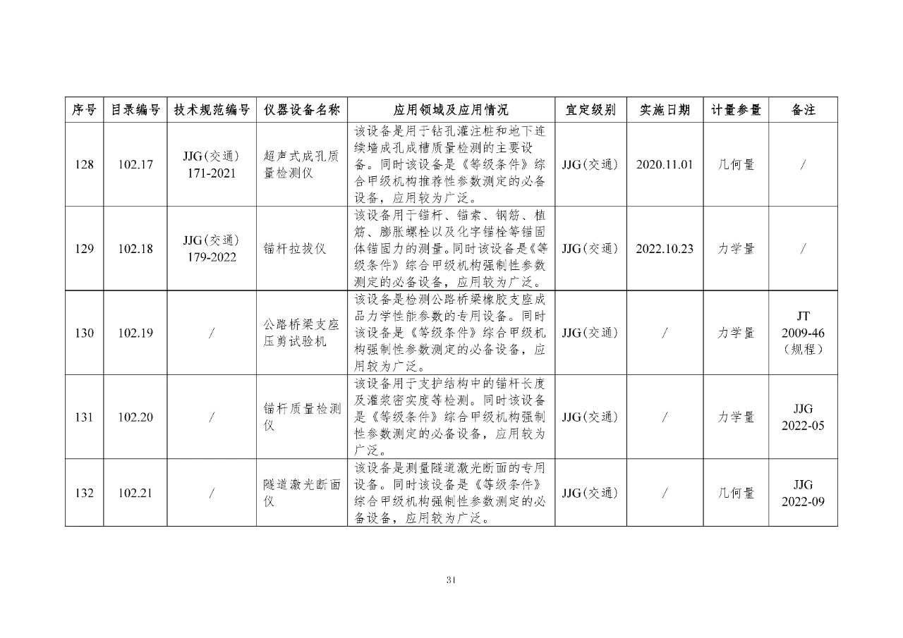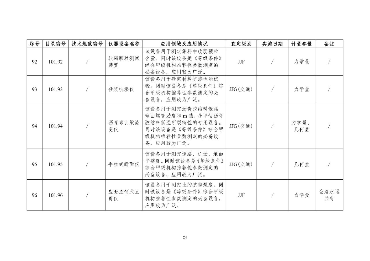 100 基礎(chǔ)設(shè)施建設(shè)計(jì)量器具是公路基礎(chǔ)設(shè)施建設(shè)質(zhì)量檢測過程中涉及的計(jì)量器具,主要包括《公路水運(yùn)工程質(zhì)量檢測機(jī)構(gòu)資質(zhì)等級(jí)條件》(以下簡稱《等級(jí)條件》)工程材料檢測、工程結(jié)構(gòu)檢測領(lǐng)域使用的計(jì)量器具,以及物探領(lǐng)域使用的計(jì)量器具。