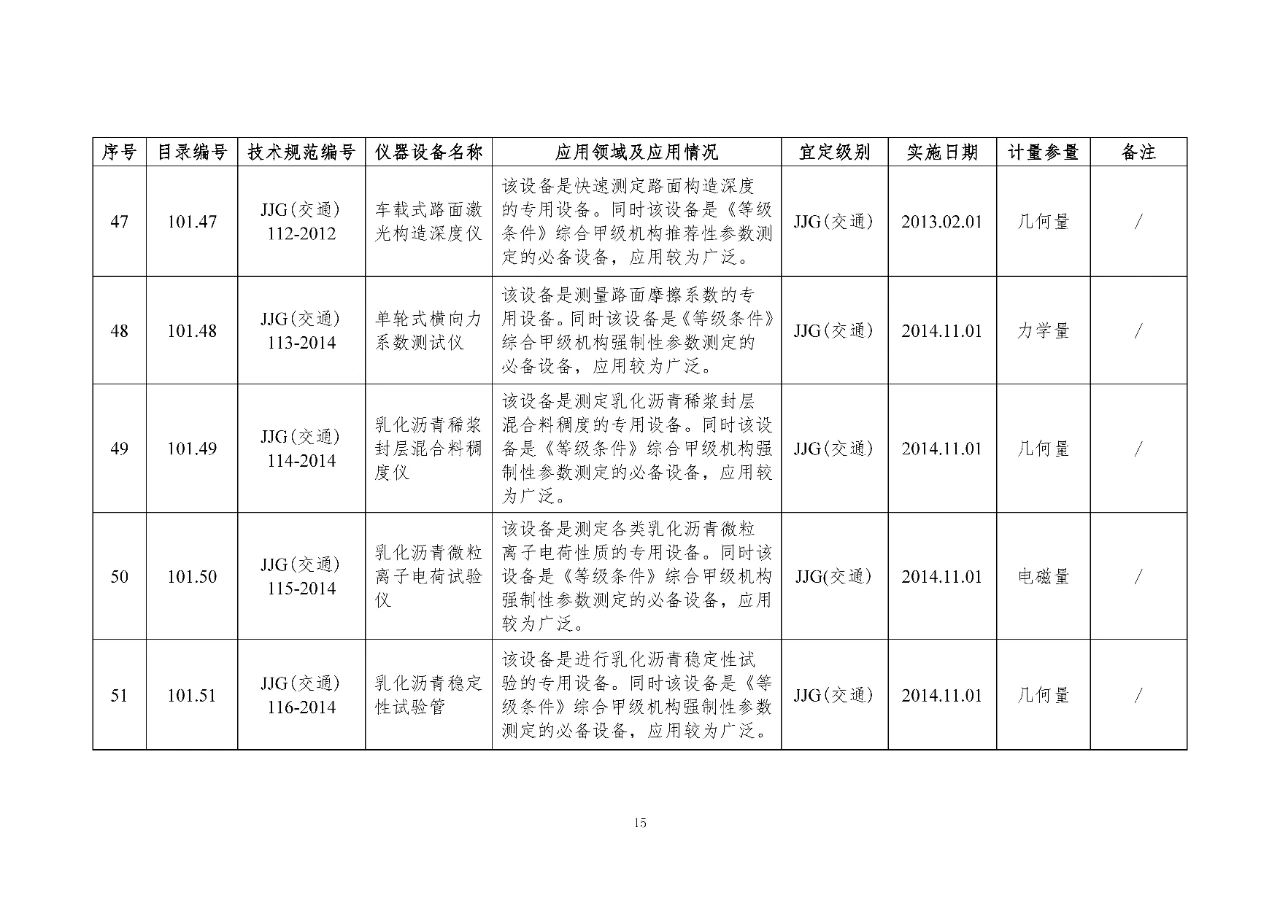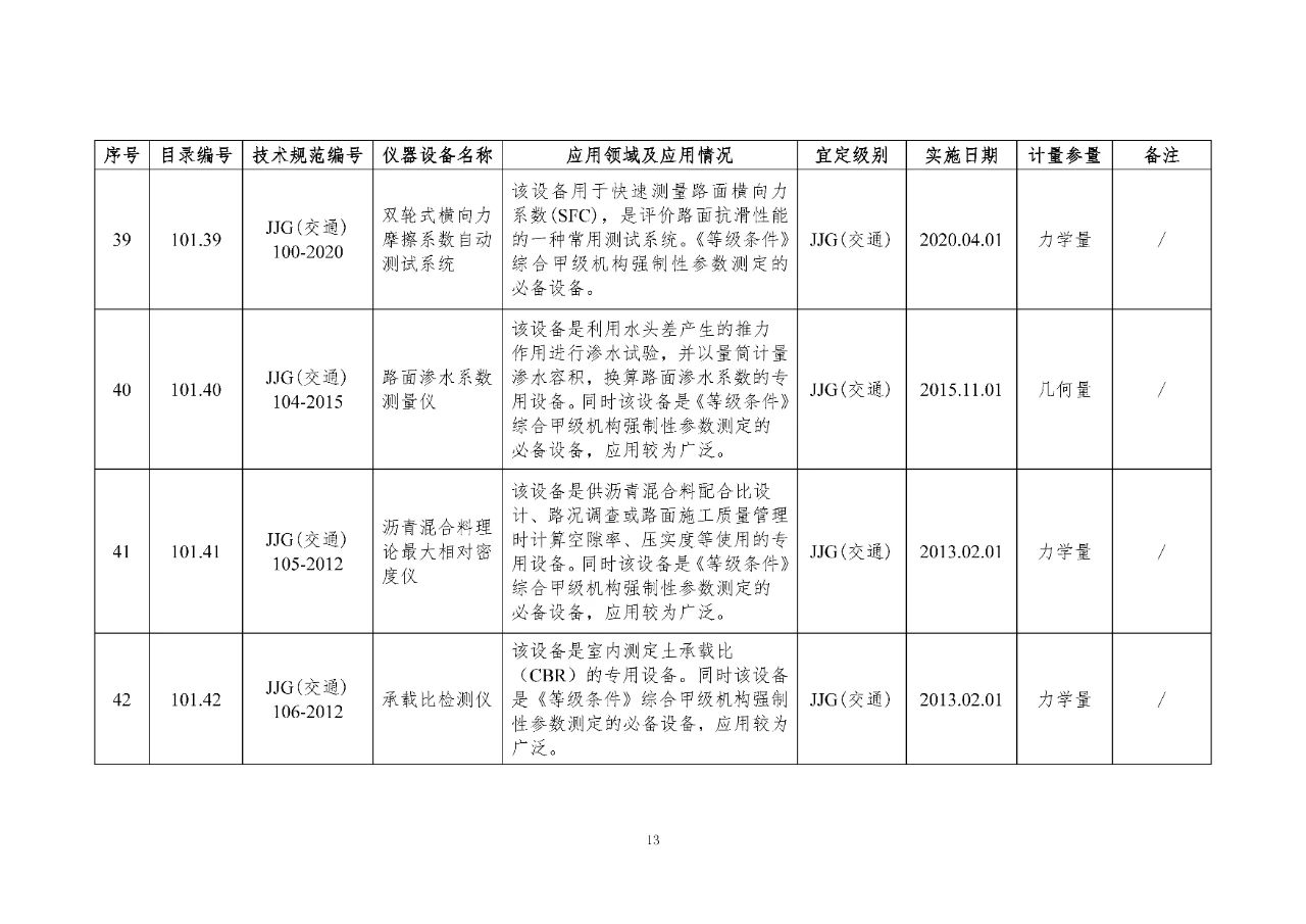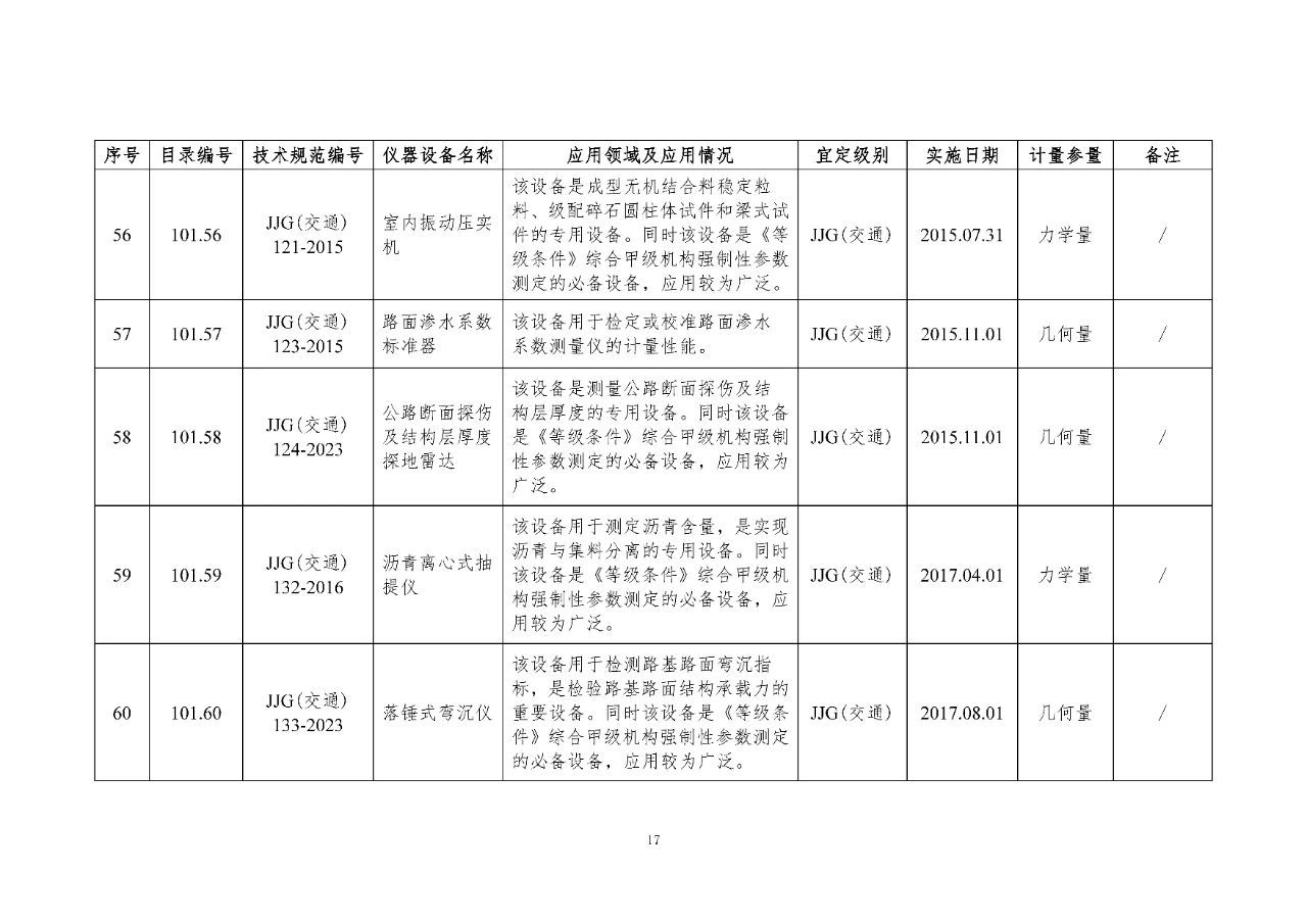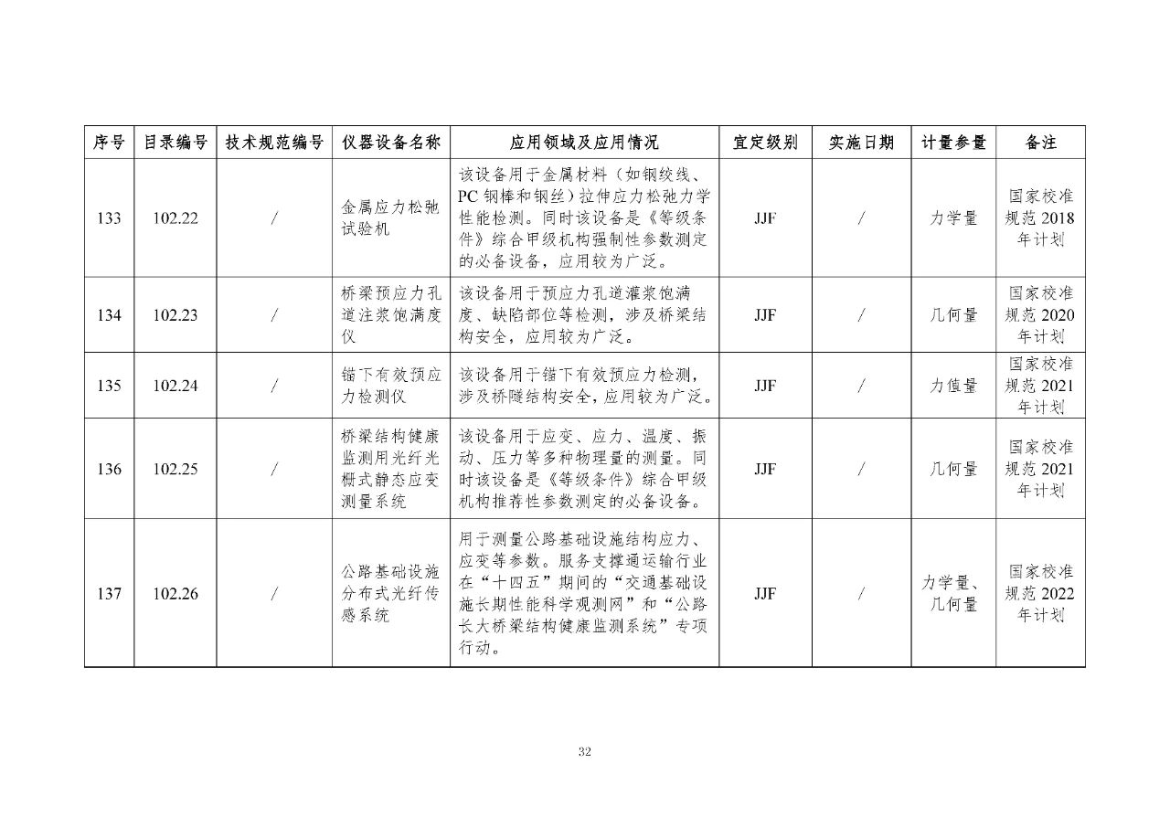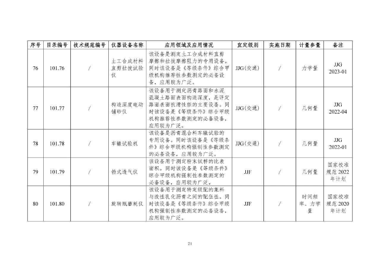 100 基礎(chǔ)設(shè)施建設(shè)計(jì)量器具是公路基礎(chǔ)設(shè)施建設(shè)質(zhì)量檢測過程中涉及的計(jì)量器具,主要包括《公路水運(yùn)工程質(zhì)量檢測機(jī)構(gòu)資質(zhì)等級(jí)條件》(以下簡稱《等級(jí)條件》)工程材料檢測、工程結(jié)構(gòu)檢測領(lǐng)域使用的計(jì)量器具,以及物探領(lǐng)域使用的計(jì)量器具。