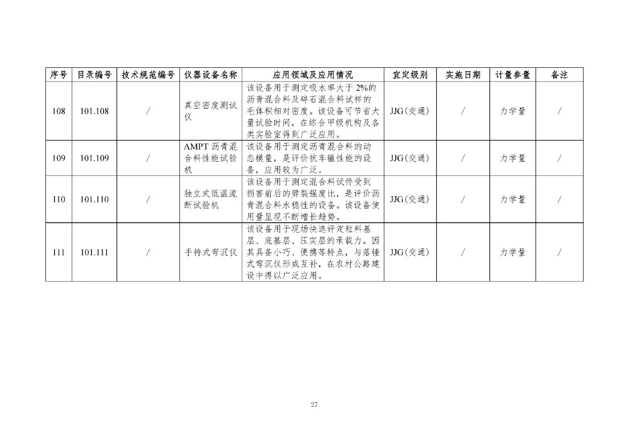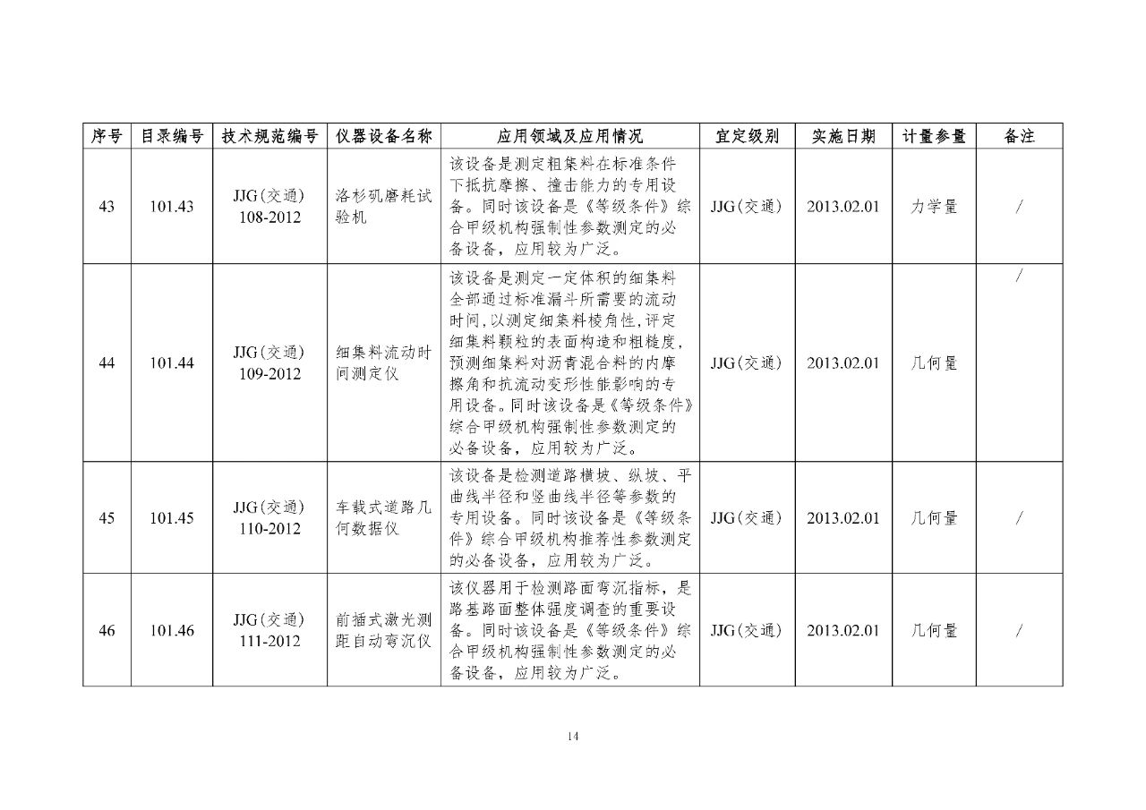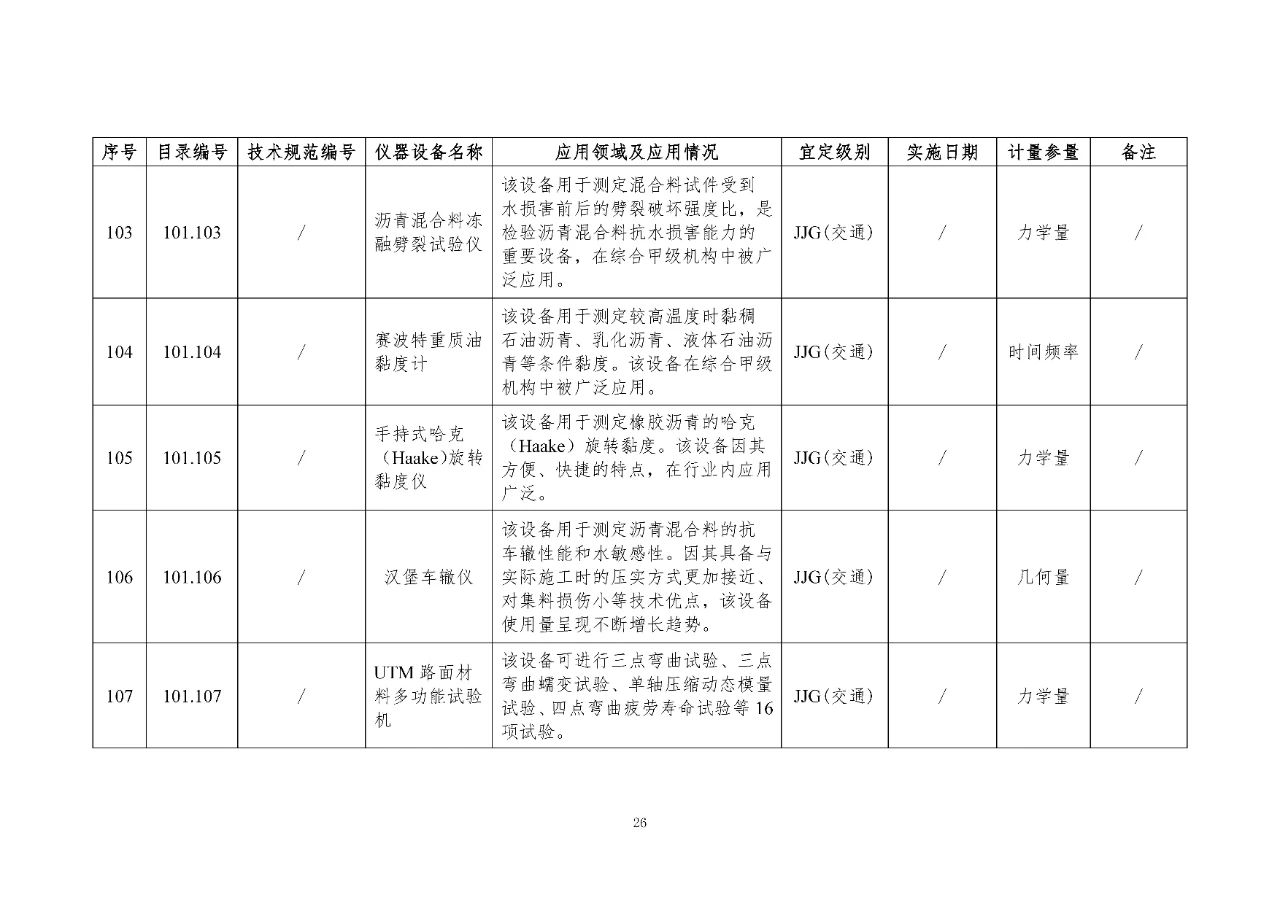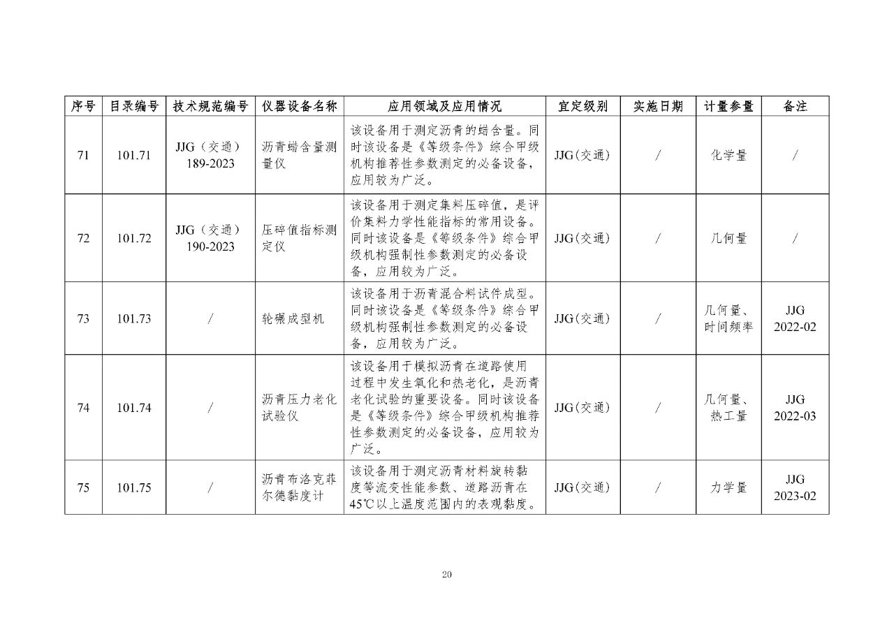 100 基礎(chǔ)設(shè)施建設(shè)計(jì)量器具是公路基礎(chǔ)設(shè)施建設(shè)質(zhì)量檢測過程中涉及的計(jì)量器具,主要包括《公路水運(yùn)工程質(zhì)量檢測機(jī)構(gòu)資質(zhì)等級(jí)條件》(以下簡稱《等級(jí)條件》)工程材料檢測、工程結(jié)構(gòu)檢測領(lǐng)域使用的計(jì)量器具,以及物探領(lǐng)域使用的計(jì)量器具。