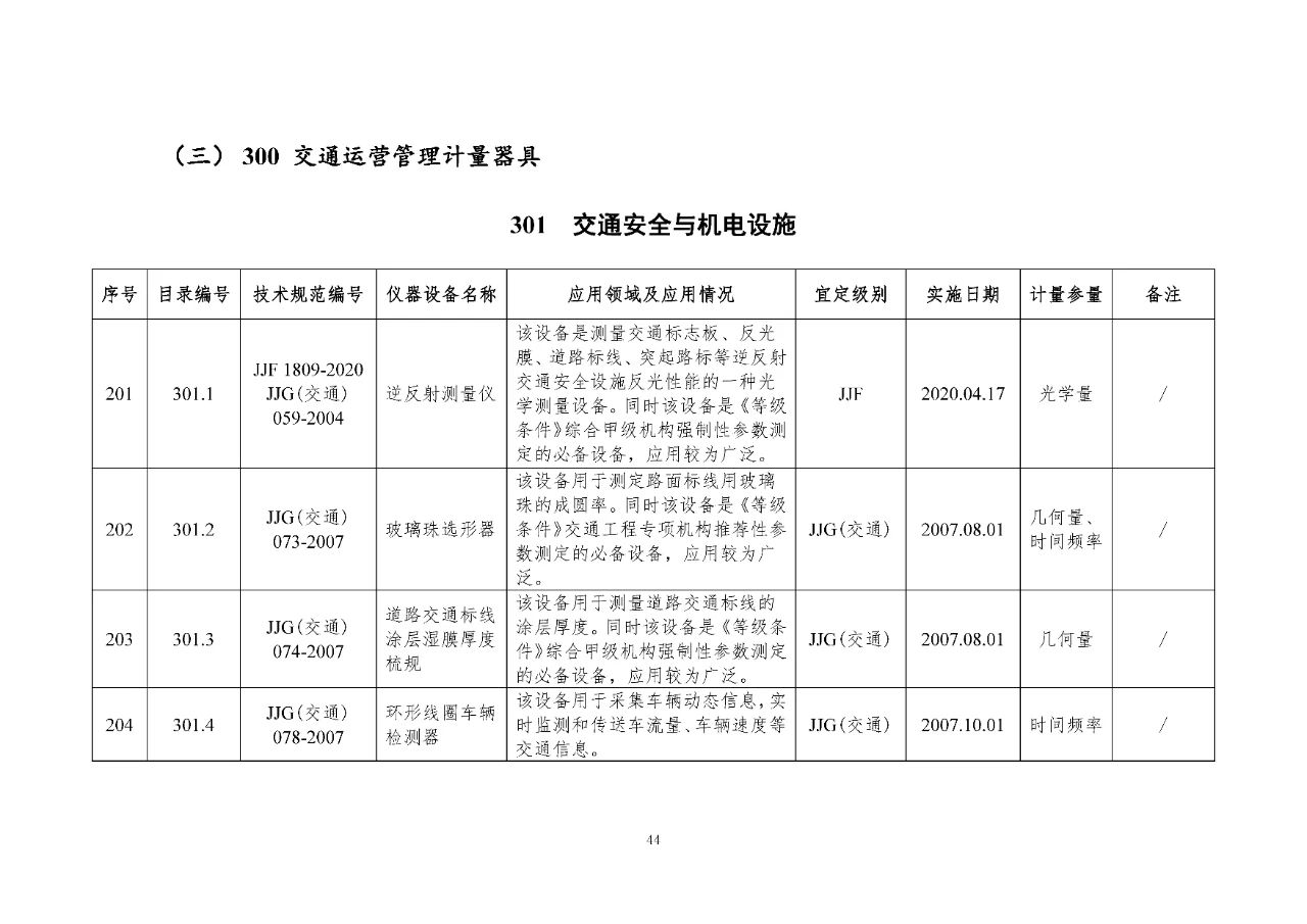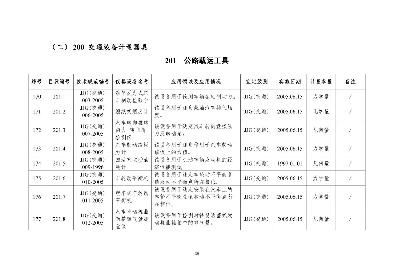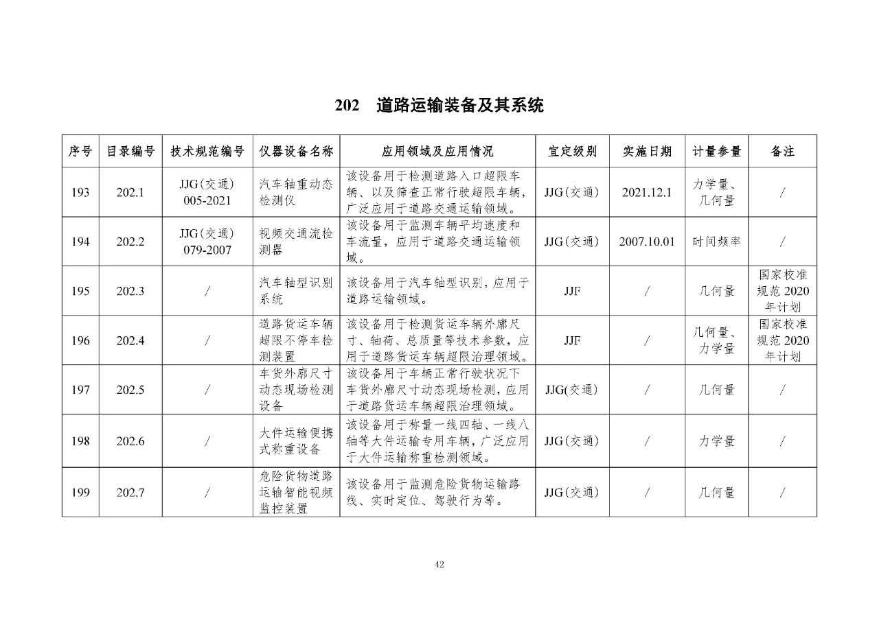 200 交通裝備計(jì)量器具是交通裝備監(jiān)測檢測所涉及的計(jì)量器具,包括汽車、電動(dòng)車、汽車維修、車載裝置檢測、檢驗(yàn)以及超限治理、特種車輛使用到的計(jì)量器具。