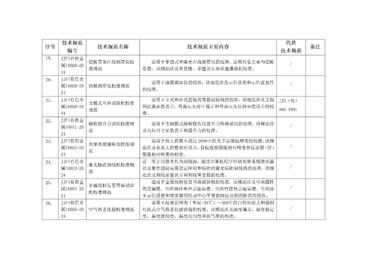 據(jù)工業(yè)和信息化部計量技術(shù)規(guī)范制修訂工作的總體安排,現(xiàn)將審查后報批的《粉塵層最低著火溫度測定儀校準規(guī)范》等123項行業(yè)計量技術(shù)規(guī)范報批稿(附件1)予以公示,公示期為2024年7月24日至2024年8月23日。如對報批的計量技術(shù)規(guī)范有不同意見,請在公示期間填寫《行業(yè)計量技術(shù)規(guī)范報批稿反饋意見表》(附件2)并反饋至工業(yè)和信息化部科技司,電子郵件發(fā)送至huangxy@cesi.cn(郵件主題注明:計量技術(shù)規(guī)范報批稿公示反饋)。