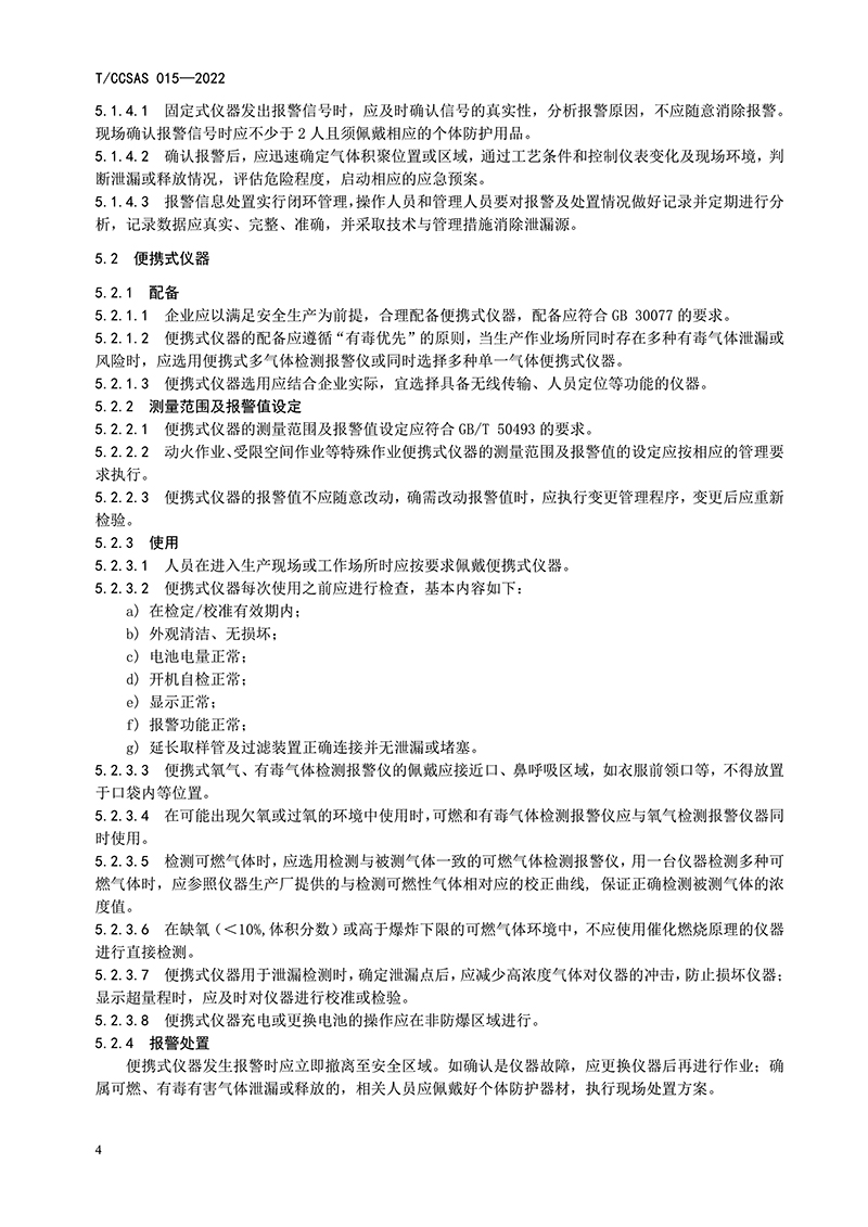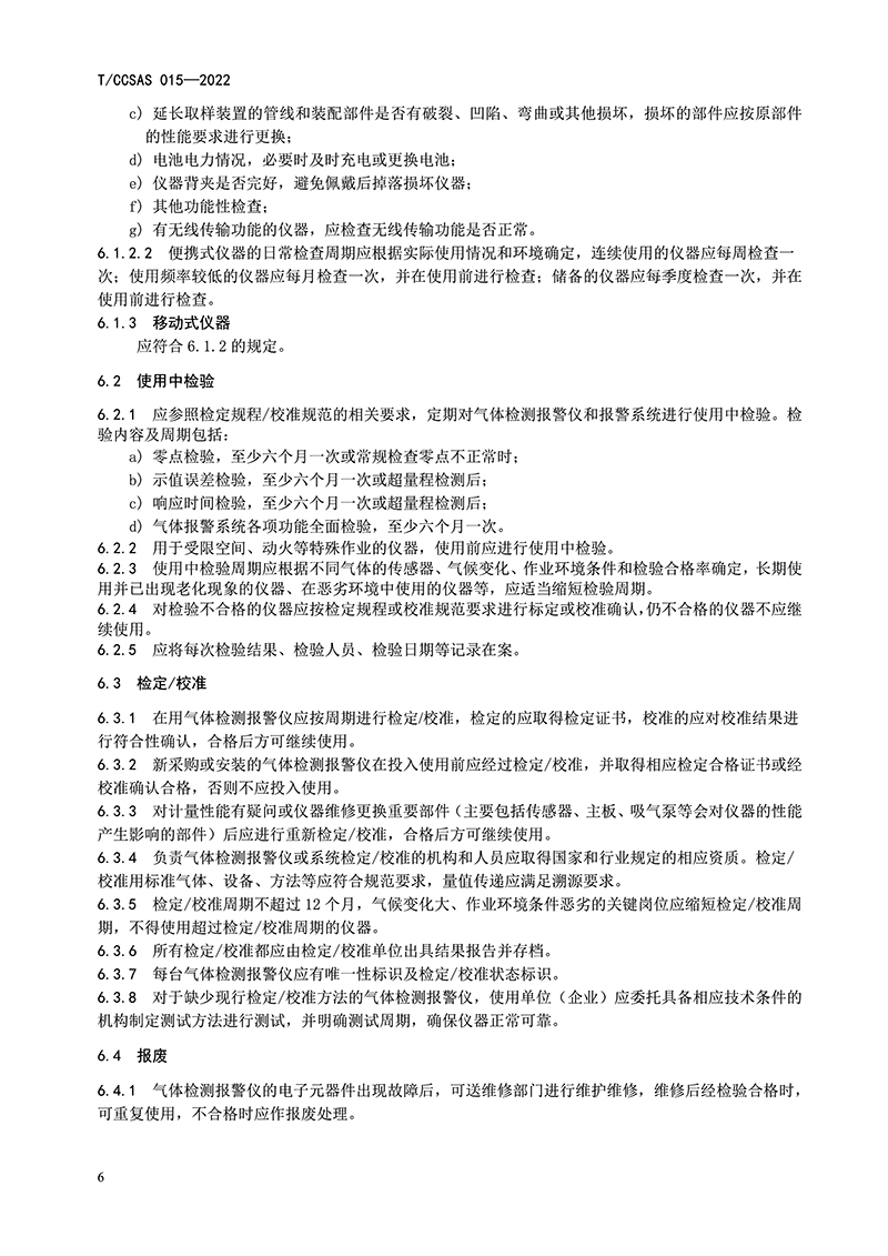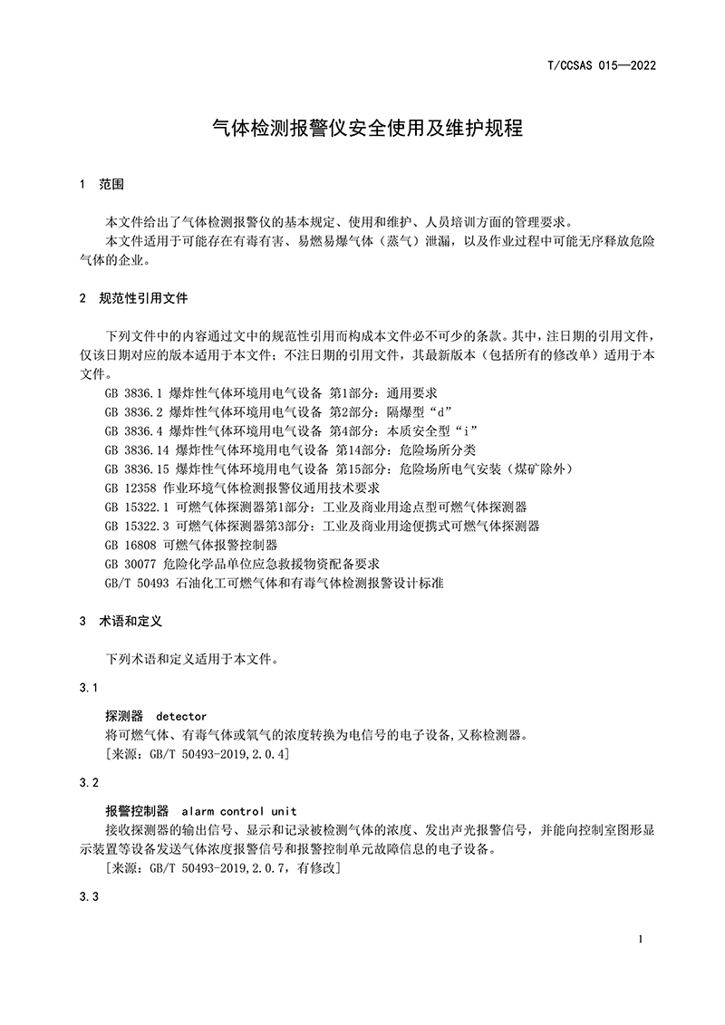 《氣體檢測(cè)報(bào)警儀安全使用及維護(hù)規(guī)程》T/CCSAS 015-2022(中國(guó)化學(xué)品安全協(xié)會(huì))↓↓↓↓↓(另存為)