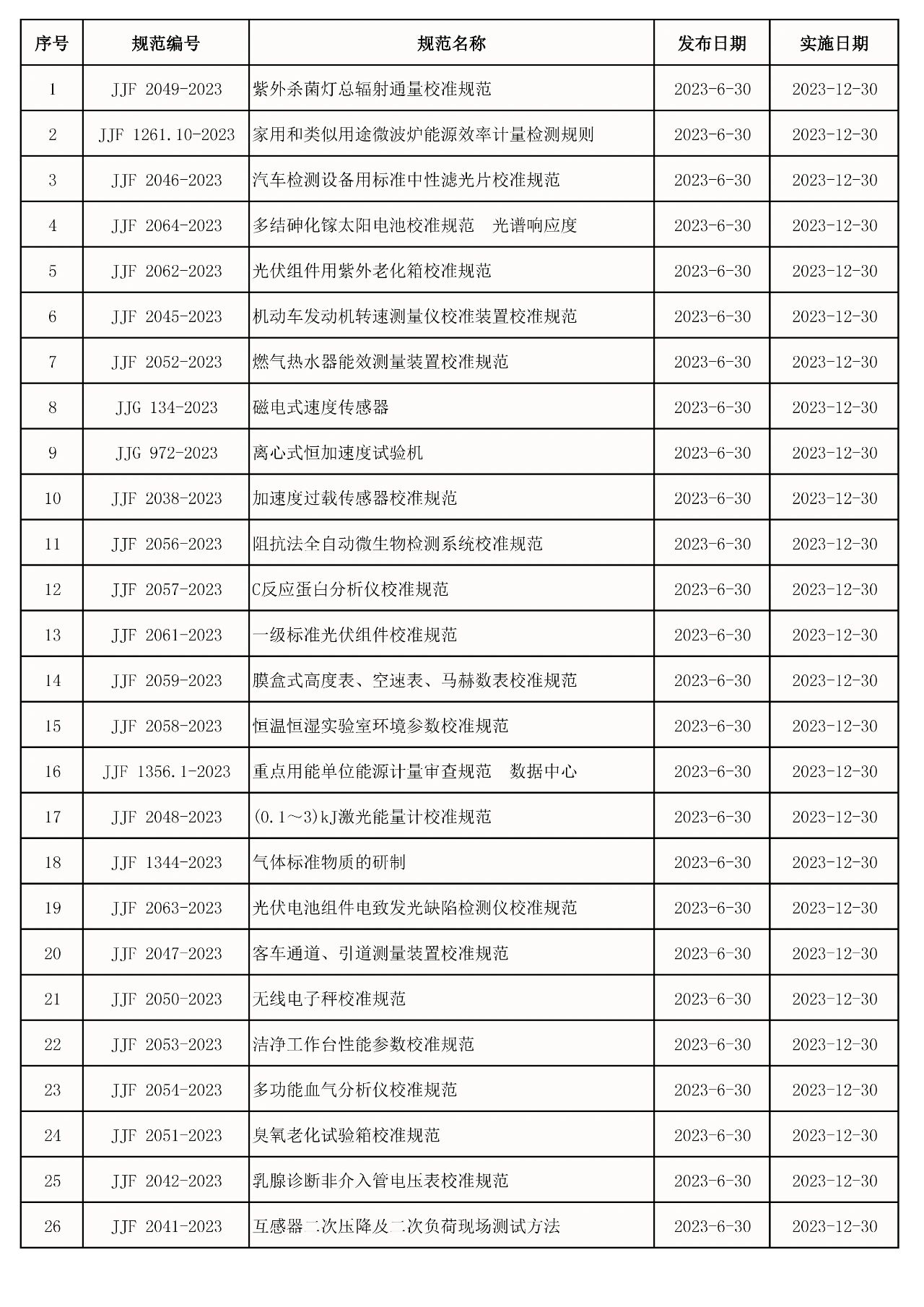 2023年實(shí)施的國(guó)家計(jì)量技術(shù)規(guī)范匯總