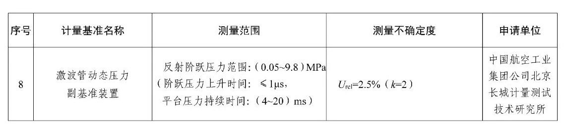 為加強(qiáng)計(jì)量體系和能力建設(shè),市場(chǎng)監(jiān)管總局?jǐn)M批準(zhǔn)新建“中頻水聲聲壓基準(zhǔn)裝置(激光干涉法)”“基于同位素稀釋質(zhì)譜法的元素含量國(guó)家基準(zhǔn)”“(13.8033~273.16)K溫度副基準(zhǔn)裝置”“激波管動(dòng)態(tài)壓力基準(zhǔn)裝置”“恒加速度基準(zhǔn)裝置”“金屬表面洛氏硬度副基準(zhǔn)裝置”“脈沖動(dòng)態(tài)壓力基準(zhǔn)裝置”“激波管動(dòng)態(tài)壓力副基準(zhǔn)裝置”等8項(xiàng)國(guó)家計(jì)量基準(zhǔn),以及提升“(15~300)J沖擊能基準(zhǔn)裝置”技術(shù)能力,現(xiàn)予以公示(具體內(nèi)容見附件)。公示截止日期為2024年1月8日。