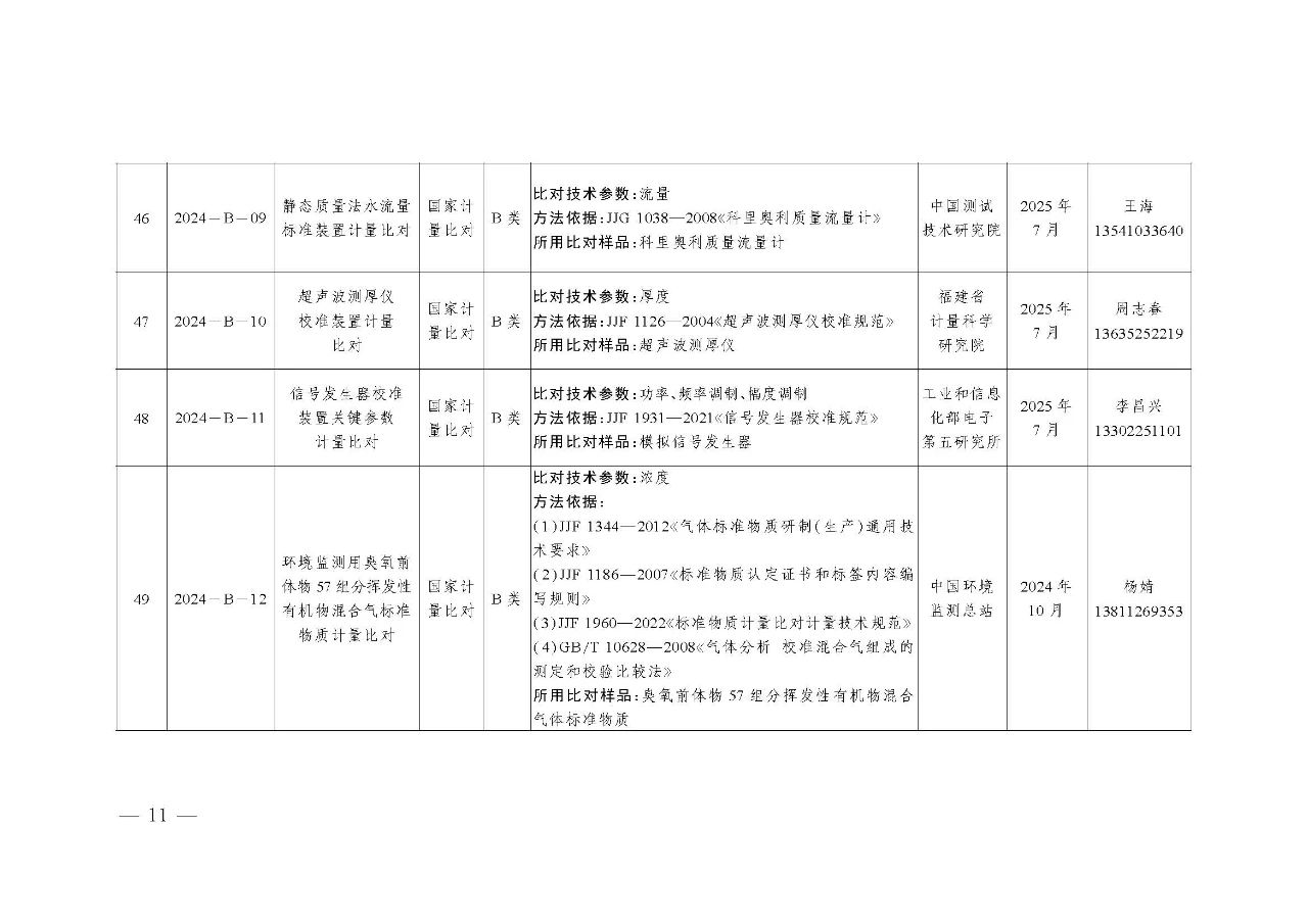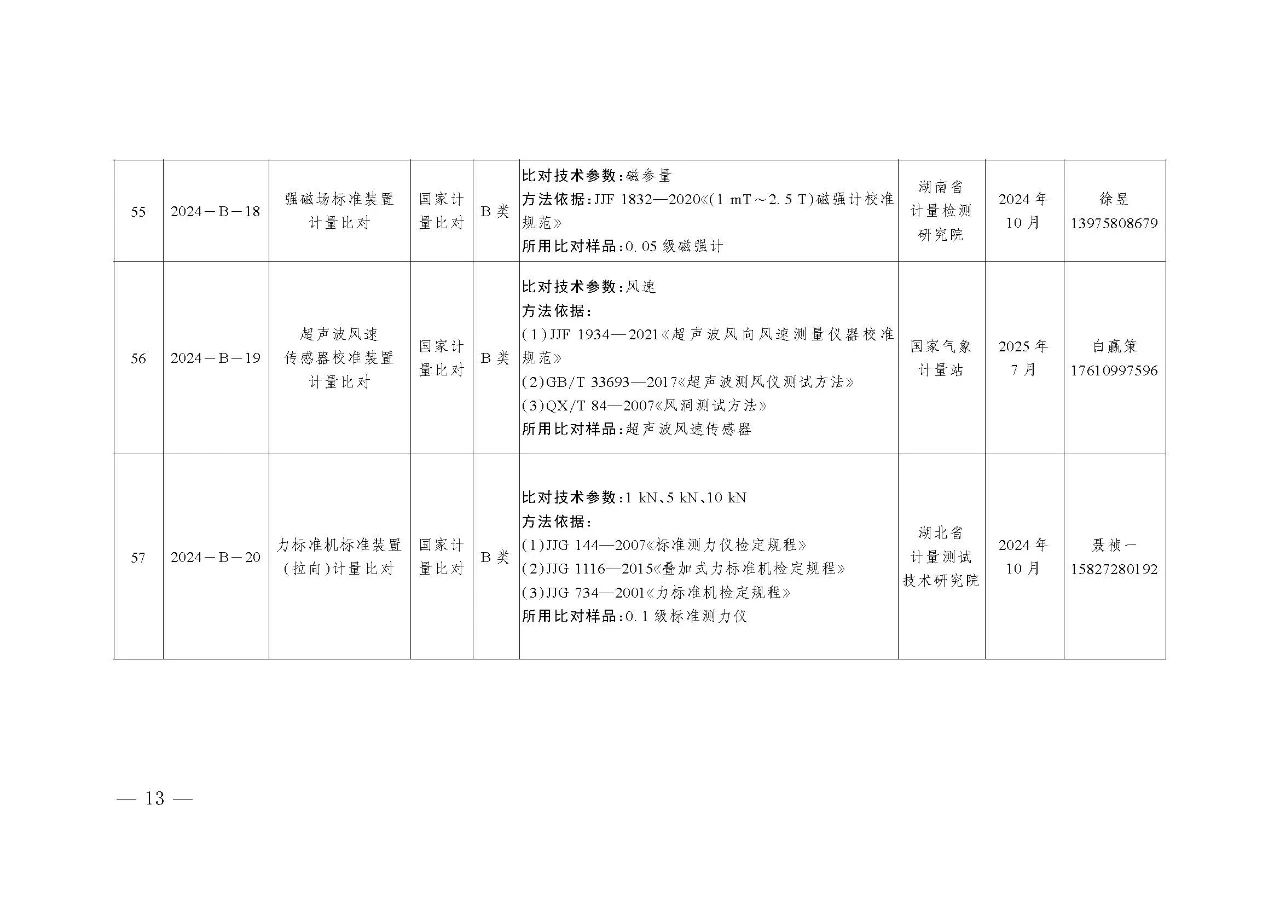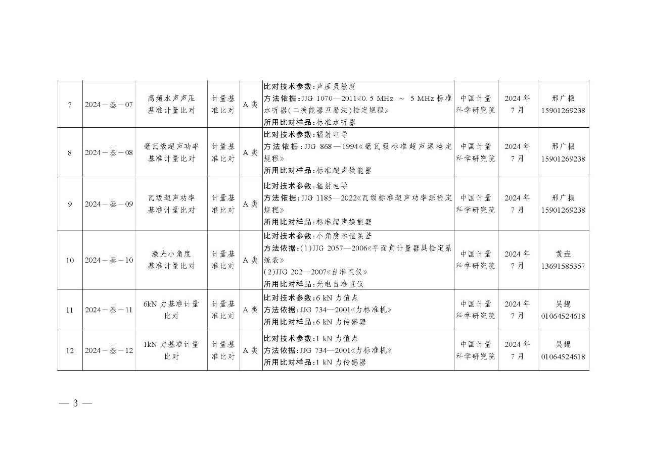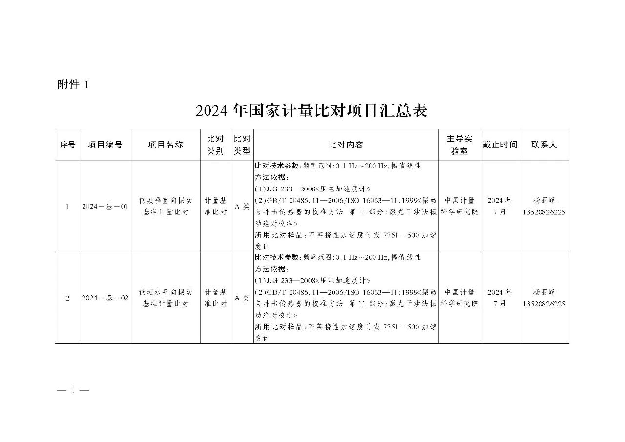 1. 計(jì)量基準(zhǔn)比對項(xiàng)目。為保障計(jì)量基準(zhǔn)量值一致性,檢驗(yàn)計(jì)量基準(zhǔn)運(yùn)行維護(hù)管理情況和保存、復(fù)現(xiàn)量值的能力,市場監(jiān)管總局決定組織實(shí)施低頻垂直向振動基準(zhǔn)計(jì)量比對等18項(xiàng)計(jì)量基準(zhǔn)比對項(xiàng)目。