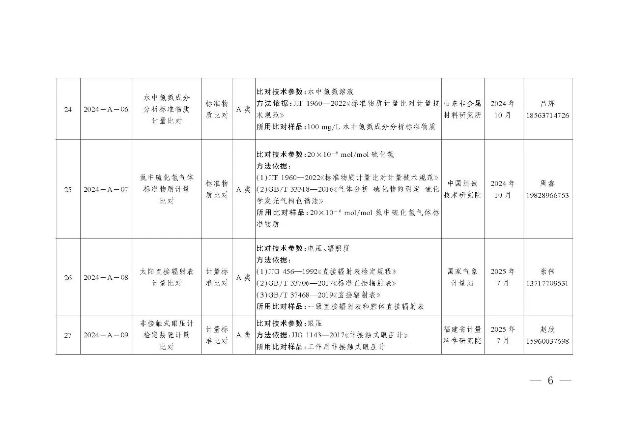 為貫徹落實(shí)《計(jì)量發(fā)展規(guī)劃(2021—2035年)》(國發(fā)〔2021〕37號)和《市場監(jiān)管總局關(guān)于加強(qiáng)計(jì)量比對工作的指導(dǎo)意見》(國市監(jiān)計(jì)量〔2020〕127號),依據(jù)《計(jì)量比對管理辦法》有關(guān)規(guī)定,更好發(fā)揮計(jì)量比對在保障量值準(zhǔn)確可靠、提升計(jì)量技術(shù)機(jī)構(gòu)能力方面的重要作用,市場監(jiān)管總局決定組織實(shí)施57項(xiàng)國家計(jì)量比對項(xiàng)目(見附件1)。有關(guān)事項(xiàng)通知如下: