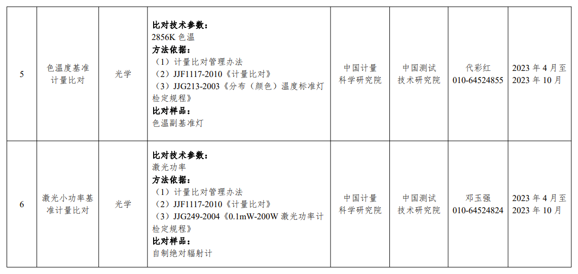附件:1.2023年國家計量基準(zhǔn)比對項目匯總表