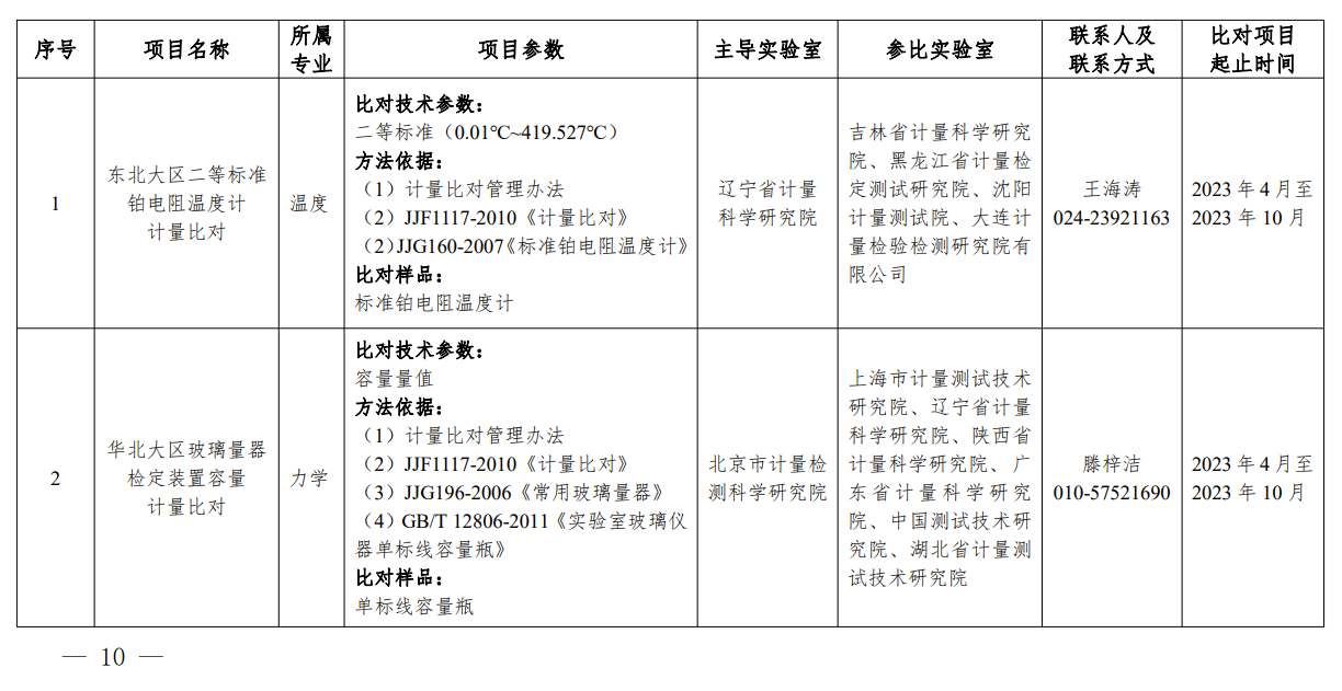 (二)大區(qū)計量比對項目。為提升大區(qū)國家計量測試能力水平,市場監(jiān)管總局決定組織二等標(biāo)準(zhǔn)鉑電阻溫度計計量比對等7項大區(qū)計量比對項目(附件2)。