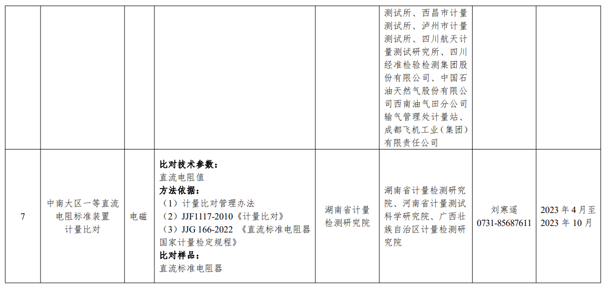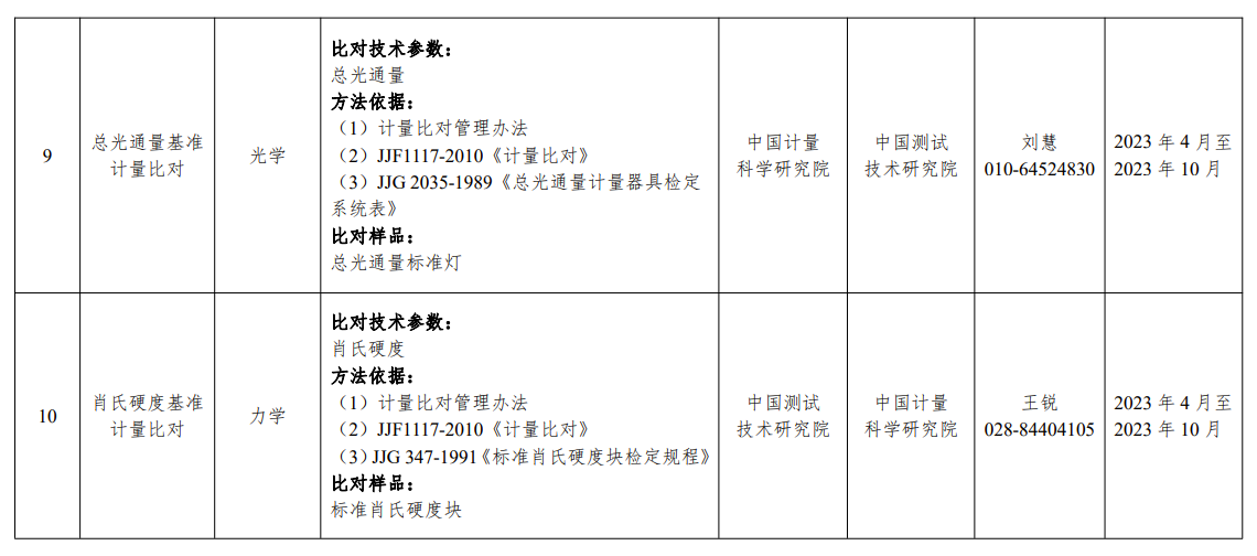 2023 年大區(qū)計量比對項目匯總表