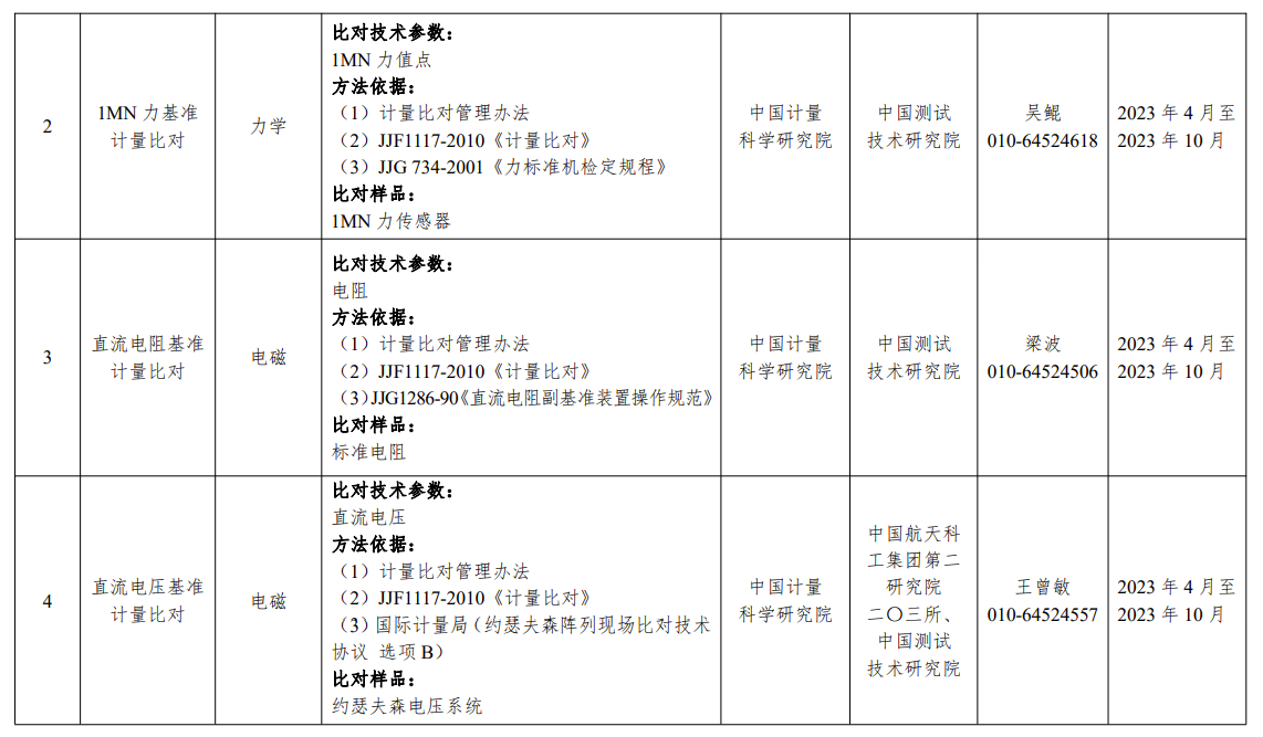 一、2023年國家計量比對項目