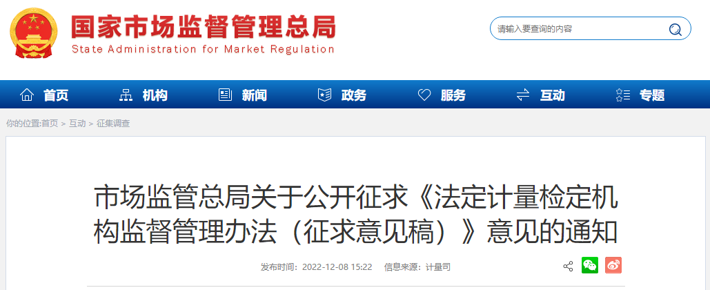 近日,市場監(jiān)管總局發(fā)布通知,為加強(qiáng)法定計(jì)量檢定機(jī)構(gòu)的監(jiān)督管理,保障國家計(jì)量單位制的統(tǒng)一和量值的準(zhǔn)確可靠,強(qiáng)化機(jī)構(gòu)履行法定職責(zé),推動機(jī)構(gòu)持續(xù)提升計(jì)量能力,滿足經(jīng)濟(jì)社會發(fā)展需要