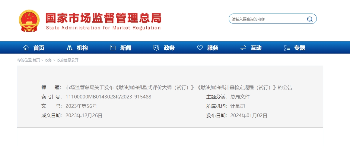 根據(jù)《中華人民共和國(guó)計(jì)量法》有關(guān)規(guī)定,批準(zhǔn)《燃油加油機(jī)型式評(píng)價(jià)大綱(試行)》《燃油加油機(jī)計(jì)量檢定規(guī)程(試行)》發(fā)布實(shí)施,現(xiàn)予公告。