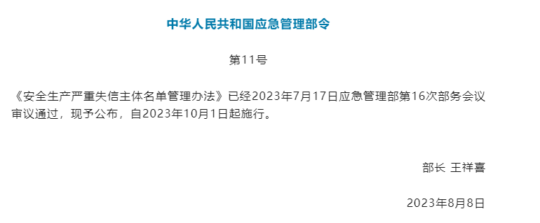 近日,應(yīng)急管理部印發(fā)《安全生產(chǎn)嚴(yán)重失信主體名單管理辦法》,辦法明確,承擔(dān)安全評價、認(rèn)證、檢測、檢驗職責(zé)的機(jī)構(gòu)及其直接責(zé)任人員租借資質(zhì)、掛靠、出具虛假報告或者證書的將列
