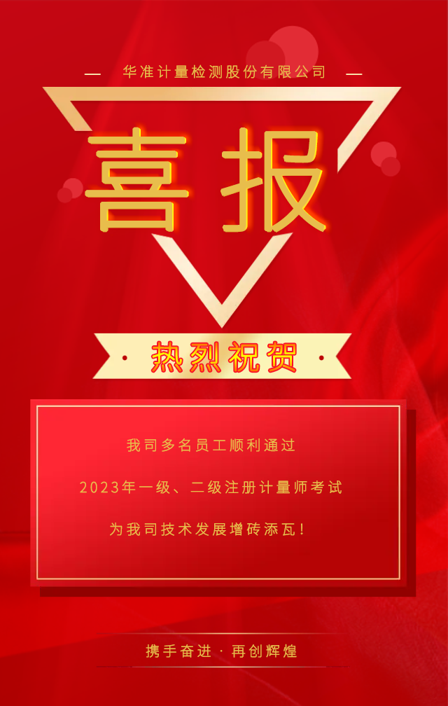 近日,2023年度一、二級(jí)注冊(cè)計(jì)量師職業(yè)資格考試成績(jī)已發(fā)布,經(jīng)過查詢,華準(zhǔn)計(jì)量多名同事順利通過一級(jí)、二級(jí)注冊(cè)計(jì)量師考試。