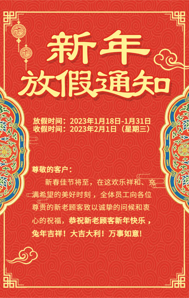 辛苦一年,愿大家都能歡歡喜喜過(guò)新年,根據(jù)國(guó)家相關(guān)規(guī)定,結(jié)合我司情況,我司春節(jié)放假安排如下: